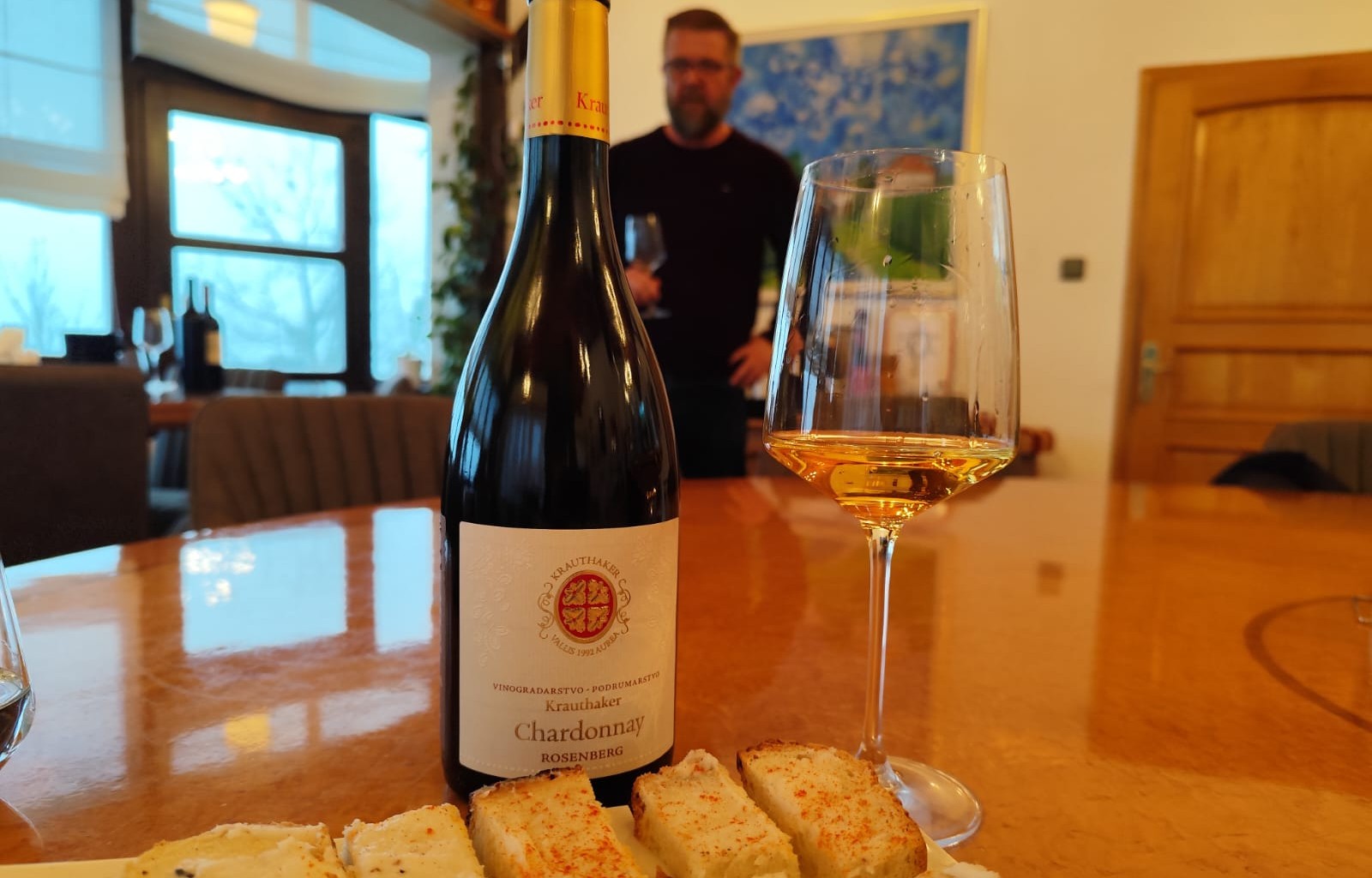 Chardonnay i kruh premazan svinjskom mašću s malo crvene paprike... Izvrsni su bili ti zalogajčići koji su pratili lijepo popodnevno predstavljanje aktualnih vina Krauthaker, pa i ponekog zrelijeg. Spomenuti Cardonnay Rosenberg 2023. nosi naziv vinogradarskog položaja i jedno je od najpouzdanijih hrvatskih vina. Pasao je on i slanini, čvarcima, kulenu te sirevima koji su bili na stolu, a pasao bi i ozbiljnijim mesnim jelima, poput telećeg pečenja, na primjer. Ako u restoranu ne znaš koje bi vino naručio, uzmi Rosenberg. Sigurno nećeš pogriješiti, puno sam puta savjetovao, a često sam i sam, tamo gdje izbor vina nije velik, igrao na sigurno s tim Vladinim vinom.
