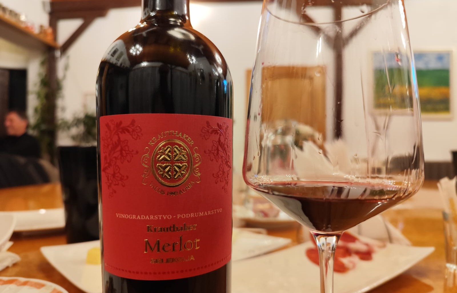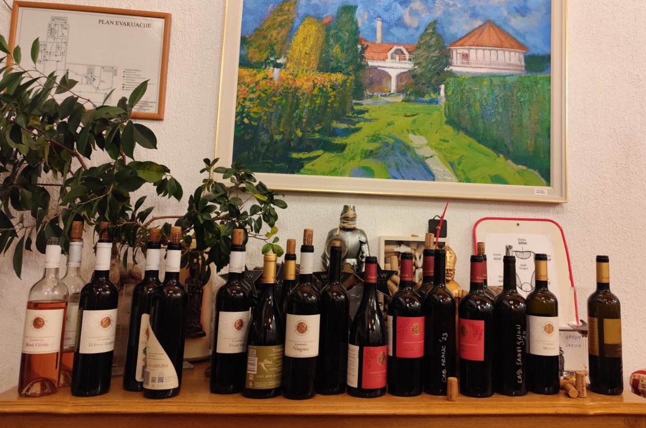 Predstavio je sommelier vinarije Ivan Štefanac vina koja su na tržištu, ili su spremna za izlazak, ali i dva iz butelja bez etiketa. U prvoj je bio najsjeverniji hrvatski crljenak kaštelanski, može se reći crljenak kutjevački. Vlado Krauthaker je, inače, posadio 44 sorte, možda i pokoju više, ali većinu puni ih u boce samo kad je vinom zadovoljan. Ovaj mu je crljenak, čini mi se, treći. Prvoga je imao prije desetak ili više godina kao ružičasto vino, a poslije smo pili i crnjak. Atualni je iz prošlogodišnje berbe. Pršti svježinom, tanini su nježni i lijepih je nekoliko godina pred njim. U drugoj neoznačenoj butelji bio je Cabernet sauvignon 2020. Ako i nema etikete, još, ima sve ostalo što dobrome vinu treba. Zvijezda kušanja bio je ipak Merlot Selekcija 2019.